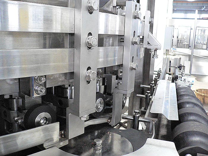 導瓶系統,結構簡單,可根據罐型進行快速方便變更,整機采用托罐底結構輸送。