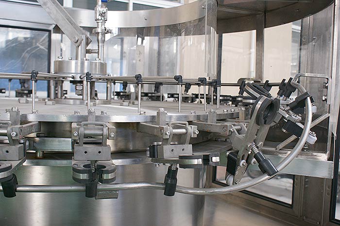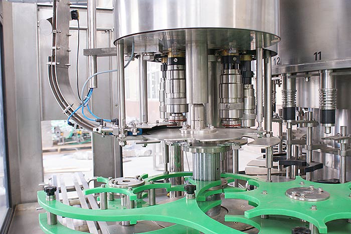 飲用水三合一灌裝機將沖洗、灌裝、旋蓋三種功能合在一個機體上,全過程實現自動化,適用于聚酯瓶、塑料瓶灌裝飲用水、蘇打水、礦泉水、純凈水、果汁等。