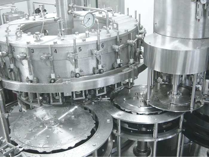 碳酸飲料灌裝機是中浩機械參照國外先進灌裝機技術進行改造和創新的產品,采用風送道與進瓶撥輪直連技術,瓶型更換方便。其塑料瓶灌裝機的結構設計更加簡單合理,精確度高,操作更加簡便。該碳酸飲料灌裝設備與物料接觸的零部件均用不銹鋼制造,具有衛生又容易清洗的特點,灌裝機可進行全面CIP清洗。