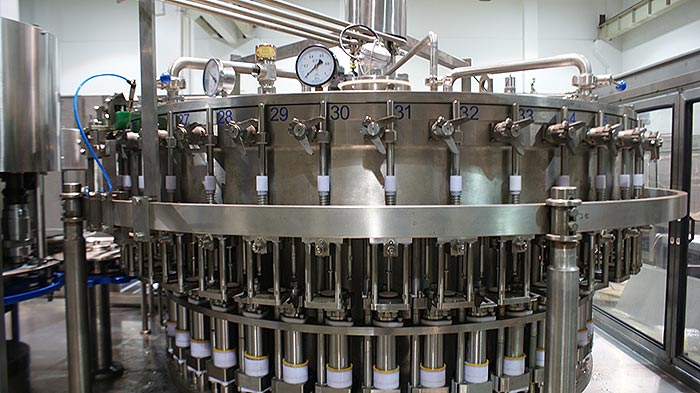 全自動碳酸飲料灌裝機械是我國引進德國技術,運用等壓灌裝原理自行設計制造,實現將液體灌裝到由沖瓶機送過來的洗好的瓶子中。