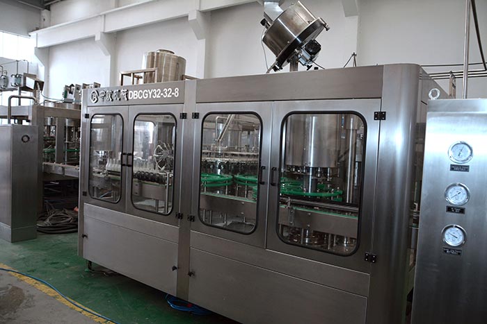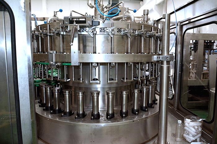 含汽飲料灌裝機是我國引進德國技術,運用等壓灌裝原理自行設計制造,實現將液體灌裝到由沖瓶機送過來的洗好的瓶子中。
